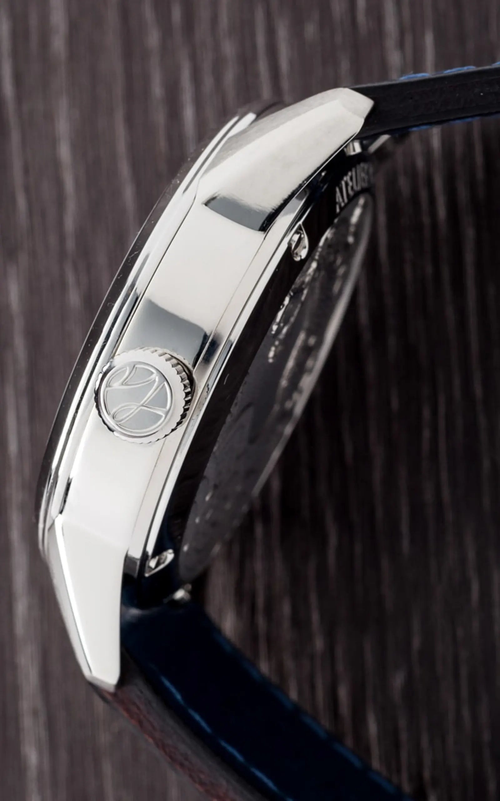 • Top-grain blue calfskin leather strap (by default), with salmon leather, brown leather and grey nubuck options.