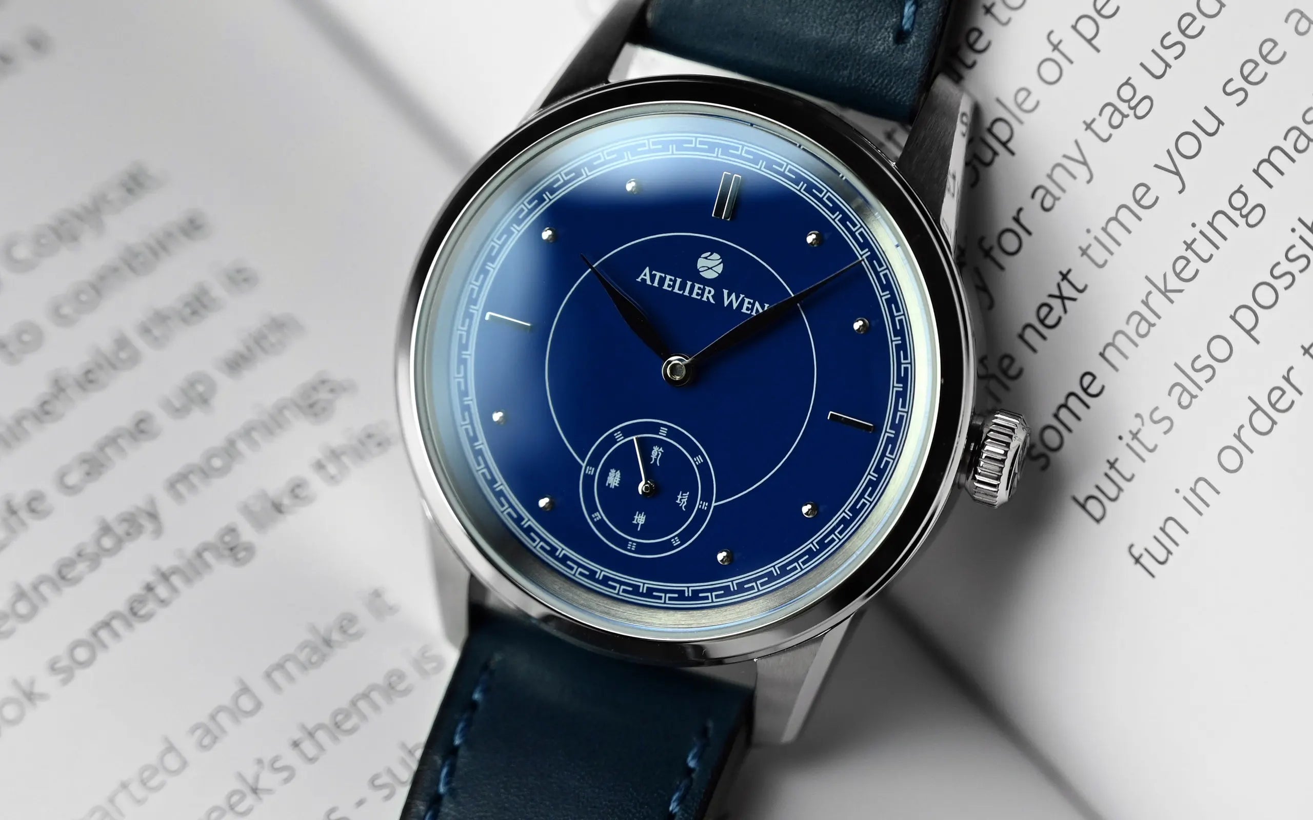 With its mesmerising blue porcelain dial and applied rhodium-plated markers, Jì gives centre-stage to Chinese tradition and the artistic elements found within it. Often regarded as the most beautiful of blues, the colour Jì was said to resemble the sky in the aftermath of a storm, and only the finest porcelains were given the honour of undergoing a primary glaze in its deep hue, imparted by the use of cobalt oxide. The overall dial composition, as mentioned, draws from chronometre watches of the 40s and 50s, and this is no coincidence. In seeking to establish an initial aesthetic, our team chose to revisit the very beginnings of watchmaking in China where the very Chinese timepieces ever made, back in Tianjin in 1955, carried a strong influence from such chronometre watches. In-line with these historical pieces, Jì’s circular and baton markers accent an outer "railway" or "chemin de fer" bordering the extremities of the dial. This feature was reimagined through the lens of our brand incorporating a Chinese pattern called 回纹 (huí wén)..